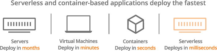 Containers take longer to set up initially than serverless functions because it is necessary to configure system settings, libraries, etc. Once configured, containers take only a few seconds to deploy. However because serverless functions are smaller than container microservices and do not come bundled with system dependencies, they only take milliseconds to deploy. Serverless applications can be live as soon as the code is uploaded.